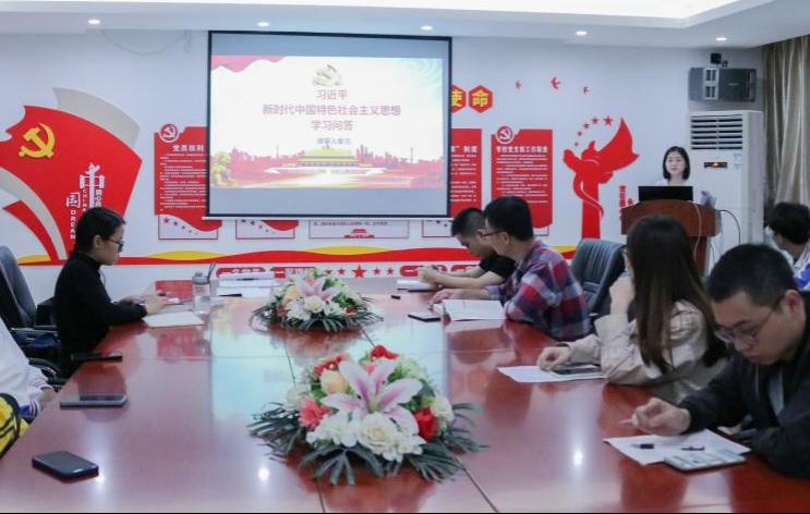 会议初始,张娥同志作为本次党史领学人,带领大家学习《习近平新时代中国特色社会主义思想学习问答》这本书。她从思想之旗领航向、人间正道开新篇、初心砥柱天地间、“四个全面”、“五位一体”、千秋伟业强基石、万山磅礴有主峰这七个主题中,选取部分问答进行分享,着重讨论了习近平新时代中国特色社会主义思想的重要性,将习近平新时代中国特色社会主义思想与前人的思想相结合,说明了具体“新”在哪。她结合自身经历,讲述了生命至上、举国同心、舍生忘死、尊重科学、命运与共的伟大抗疫精神。最后她表明新时代孕育新思想,新思想指导新实践。随着新时代中国特色社会主义实践的深入推进、不断拓展,这一思想必将进一步丰富完善,展现更强大、更有说服力的真理力量,指引中国人民续写更加辉煌的篇章、创造更加伟大的传奇。