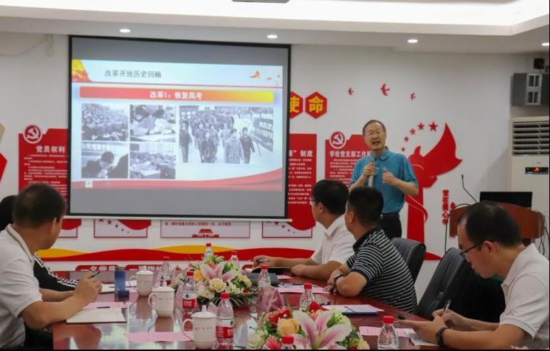 学习分享会在庄严的国歌声中展开。工学院党总支书记张进同志作为领学发言人,带领党员学习改革开放历史、改革开放取得的成绩和改革开放带来的启示。张进同志以十一届三中全会作为切入点,带领党员回顾了恢复高考、农村改革、经济体制改革等内容,以配图的形式让党员更加直观的感受到中国改革开放前后的变化。习近平总书记曾指出:改革开放不仅深刻改变了中国,也深刻影响了世界。最后,张进同志分享了学习改革开放史所带给自己的启示,无论是在思想政治学习还是在日常工作中,都要实事求是做人、脚踏实地做事。