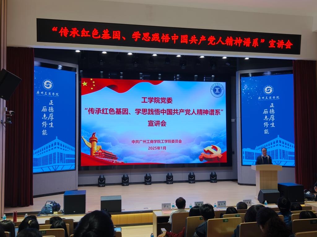 【本网讯】2025年1月3日,工学院在三水校区召开党委理论学习中心组(扩大)会议暨“铸魂:精神谱系宣讲”报告会。学院党委书记宋锋华以伟大建党精神为题开展宣讲会,学院师生党员共400余人参加。会议由学院党委副书记罗俊主持。