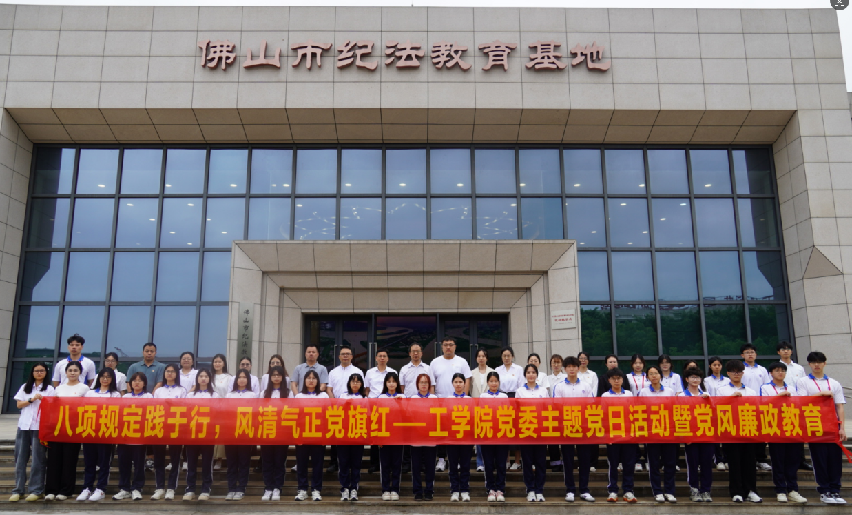 【本网讯】为深入贯彻中央八项规定精神学习教育,持续巩固党纪学习教育成果,推进作风建设常态化长效化,4月22日,学院党委组织师生党员前往佛山市纪法教育基地开展“八项规定践于行、风清气正党旗红”主题党日活动。此次活动旨在通过沉浸式警示教育,推动全面从严治党向纵深发展,以优良党风引领教风学风建设。