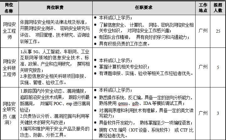 理工科相关专业,信息安全、网络空间安全、计算机、网络工程、密码学、软件工程、物联网工程、通信工程、电子信息、自动化等专业优先。