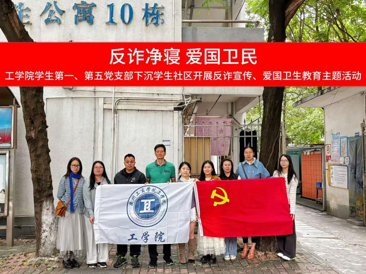【本网讯】为积极响应一站式学生社区的建设要求,贯彻落实党建引领下沉一线,深入学生社区,2025年10月22日,工学院学生第一党支部与第五党支部在胡垂立副院长的带领下,组织支部教师党员深入学生宿舍10栋走访,积极开展“反诈净寝,爱国卫民”主题活动。