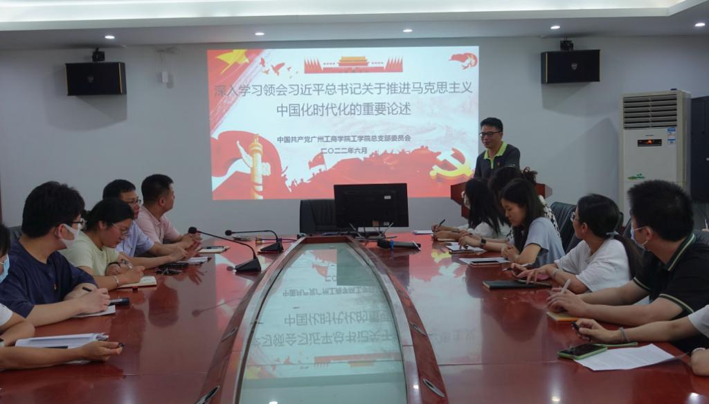 【本网讯】6月21日,工学院党总支理论学习中心组召开会议,深入学习领会习近平总书记关于推进马克思主义中国化时代化的重要论述。工学院党总支统战委员梁家华作领学发言,工学院全体党务干部参加学习会,学习会由党总支宣传委员张渊超主持。