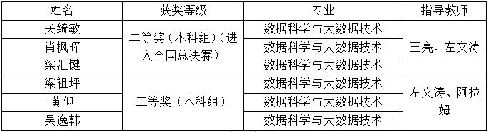 工学院19数据科学与大数据技术专业的6名学子,分别组成两队参加本科组的角逐,在赛事中表现优异,两支队伍均获奖。获奖情况如下:
