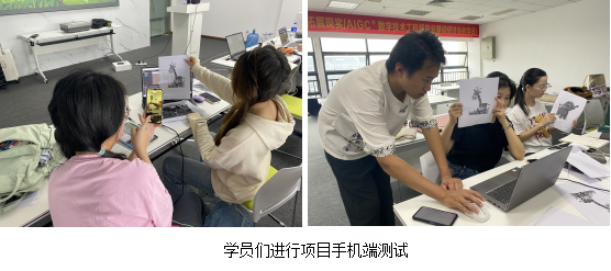 在学员们完成项目开发实例后,在手机端进行打包测试。包括平面图片识别、多目标图片识别、图像跟踪等。培训课堂上,学员们听讲专注,笔记认真,师生互动交流,活跃充分,学习气氛浓烈。