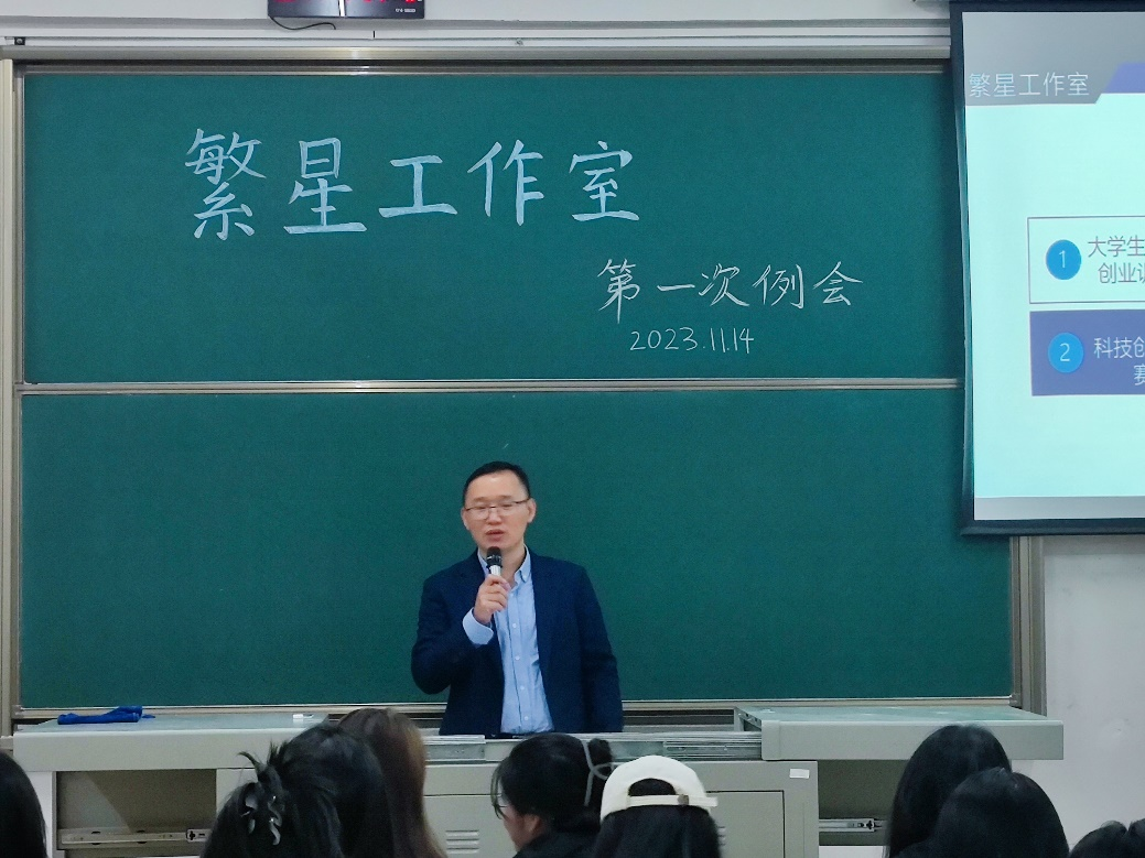 繁星工作室的指导老师左文涛老师在例会中提出希望同学们充分发挥主观能动性,找到自己爱好并投入时间和精力,然后讲述了繁星工作室的起源以及组织的工作,鼓励同学们积极参与比赛,要从实际出发,在借鉴和参考的基础上汲取更多知识,并学会及时摒弃琐碎之事,聚焦核心深入探究。最后左文涛老师强调了同学们应注重身体锻炼,并祝愿同学们学业有成,过得开心。