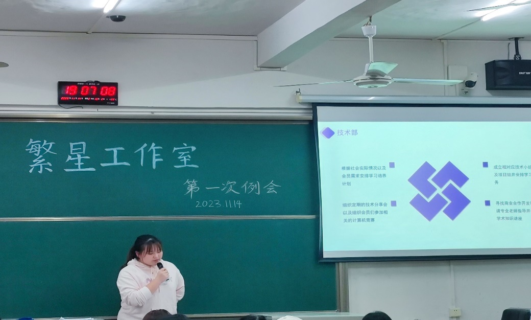 此次例会由繁星工作室会长孙嫦君主持并介绍繁星工作室的组成结构及其负责内容,回顾了过去一年的活动及成果,在此基础上提出繁星工作室的未来规划,并且希望繁星的所有成员能够在未来中有所收获。