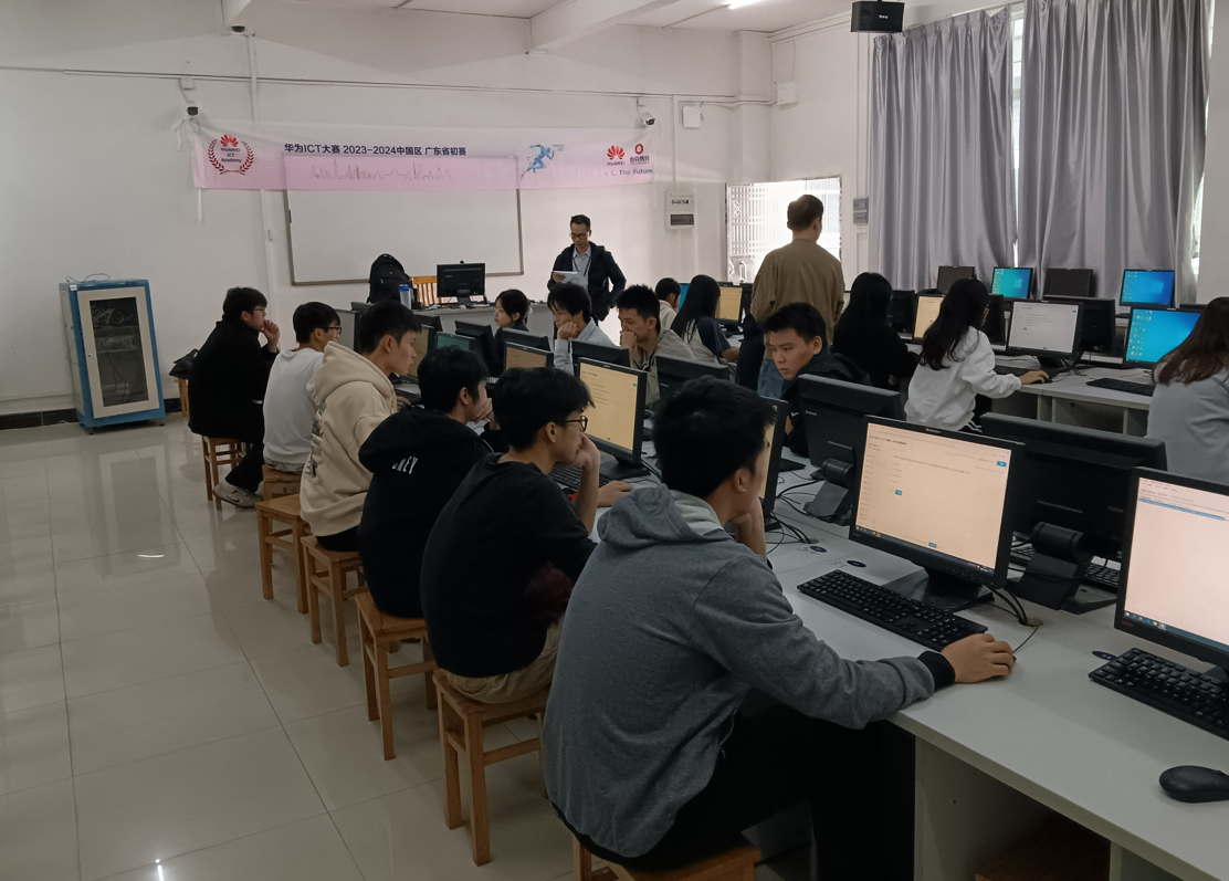 2023年11月18日,2023-2024华为中国大学生ICT大赛广东省初赛顺利举行。beat365在线体育官网登录入口作为初赛考点之一,本次共计74名学生参加网络赛道、云赛道和计算赛道初赛,考试规模是历年来最多的。本次初赛在网络工程教研室主任王准副教授、贾帅帅老师、陈超良老师的精心组织和安排下,历时近2个月的报名、讲座、培训、与华为企业对接、机房设备调试等,最终保证了所有参赛学生成功完成线下初赛。本次比赛也得到了华为合作伙伴泰克教育的大力支持。