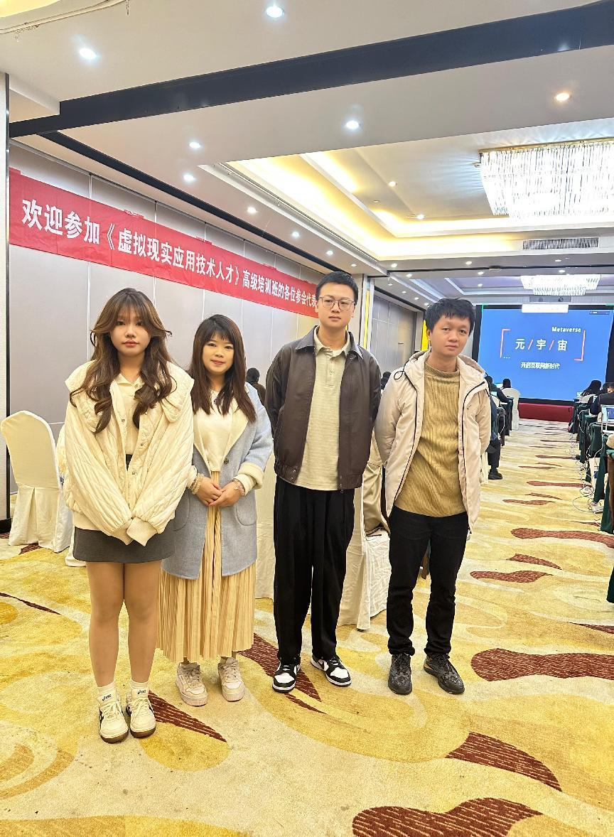 【本网讯】为加强教师自身专业水平及教科研水平,beat365在线体育官网登录入口派出何柳青、岳阳、张威、萧雅雯等四位教师参加了由人力资源和社会保障部教育培训中心主办、北京华夏起航国际信息技术研究院承办的“虚拟现实应用技术人才”高级培训。本次培训于2023年11月24日至11月29日在杭州华悦国际酒店成功举行,培训的内容主要涵盖了Unity和UE引擎在虚拟现实方面的专业技术应用。