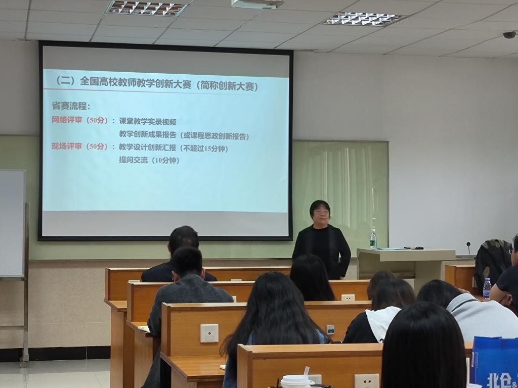 宋教授在解读赛制规则时指出,参赛教师需要准备一堂完整的课程,包括课程导入、教学内容、课堂互动、课后总结等环节。比赛形式主要包括现场教学、教学设计方案评审、教学反思报告评审等。现场教学环节是比赛的核心,参赛教师需要在规定的时间内完成一堂课程的教授,充分展示自己的教学能力和风采。宋教授还强调了比赛评分的重要性。评分采用分数制,青年教师在比赛中获得的优异成绩和荣誉将在职称评定、职业发展等方面得到重要的加分和帮助。因此,参赛教师应全力以赴,争取在比赛中取得优异成绩。