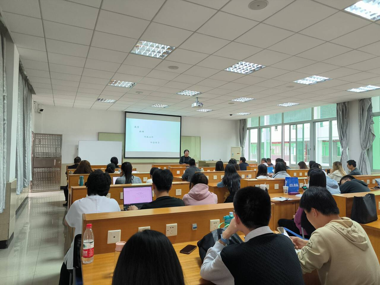 毋福海教授则是跟我们分享了教学体验,从一堂课中如何更好地传授知识,如何充分调动学生学习的积极性,以及如何设计好一堂课。在讲座的最后,宋教授和毋教授与我院青年教师进行了探讨,进一步解释了如何能够完善自身,参与竞赛。