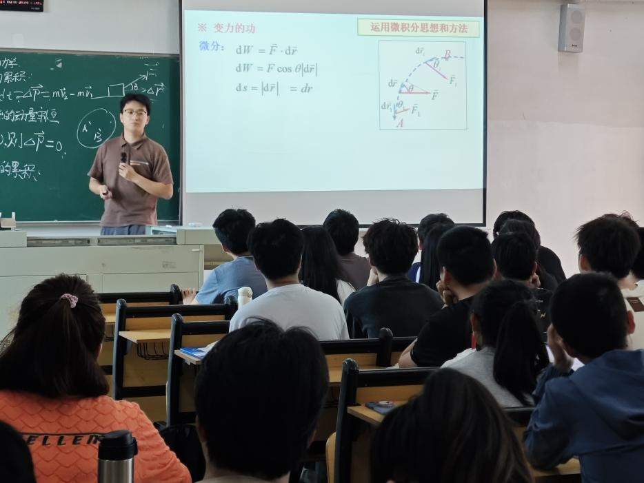 《大学物理》是理工科大学生不可缺少的一门公共基础课。学习大学物理对提高学生多种能力和改善学生综合素质都有积极作用。在观摩课上,解相弘老师有条理有重点的进行了课前复习并引出本次课的学习重点,备课充分,教学设计合理,以层层递进的方式从力引申到功最后到定理,逻辑思维连贯,使学生能够易于理解和运用。同时还积极引导学生进行思考讨论,通过例题来巩固知识点。学生上课认真,整个课堂学习氛围十分融洽。