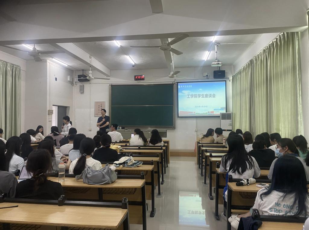 【本网讯】2024年5月29日,工学院迎来了一场别开生面的22级学生座谈会。此次座谈会汇聚了众多22级所有专业的班级代表,胡垂立院长主持。本会旨在通过倾听学生声音,共同探索教学改革的新方向,提升教学质量与学生互动体验。