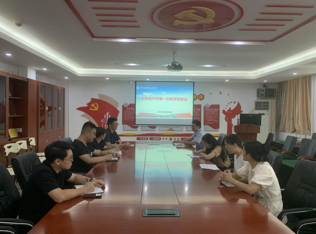 【本网讯】新学期伊始,为确保教学工作的顺利开展,工学院于9月9日开学第一天举行了教学检查会。学院领导及教学督导组成员早早来到会议室,准备对开学第一天的教学情况进行全面检查和部署。会议由工学院院长张永平主持,他强调了开学第一天教学检查的重要性,这不仅关系到新学期教学工作的良好开端,更关乎整个学期的教学质量和学生的学习积极性。