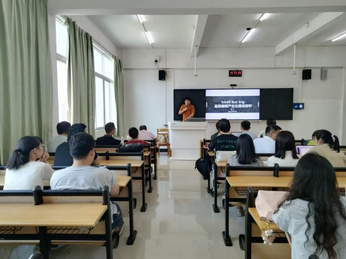 第三位汇报人为权力博士。权老师于美国宾夕法尼亚州立大学获得博士学位,专业研究方向为作物遗传改良的新技术应用。权力老师此次汇报的题目为《Small but big:基因编辑产业化路径探析》。权老师以基因编辑技术为一个研究应用创意起点,结合国计民生等重大需求为导向,加持企业商业化运营所需,汇报了由一个技术所产生的巨大商业机遇。突出强调:在保障国家粮食安全的前提下,小的核心技术瞄准商业需求,能够创造出核心产品,进而保障企业和国家利益。旨在通过一个案例来启迪食品专业其他研究团队,能把拳头产品在合适的路径下达到科技价值的最大化。