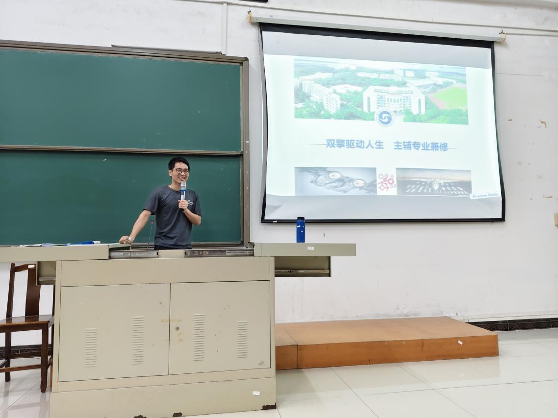 优秀青年教师莫星忧老师分享了“双擎驱动人生 主辅专业兼修”,为同学们介绍辅修课程,指导同学们在学有余力的情况下,结合个人学习时间和实际能力,积极拓展第二专业知识,全面提升自身的知识水平。