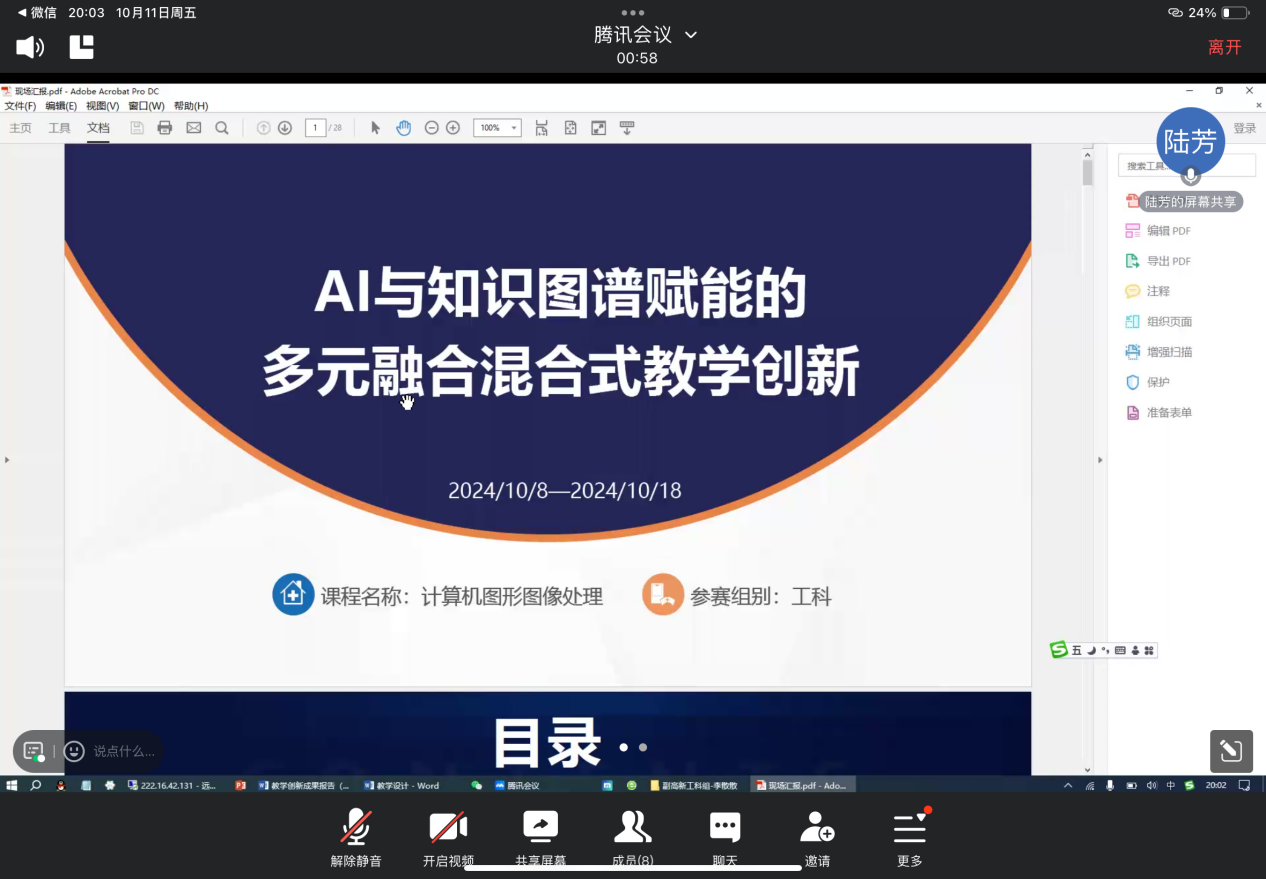 本次线上打磨会旨在通过专家指导与交流互动,帮助参赛教师优化教学设计、创新教学方法。会议伊始,陆教授分享了当前教学创新领域的前沿理念与优秀案例,拓宽了教师们的视野。随后,参赛教师依次展示自己的教学创新成果,涵盖课程设计思路、教学方法应用、课堂互动环节等方面。