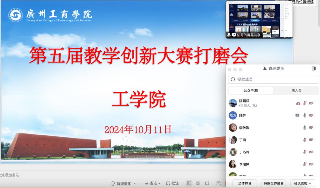 【本网讯】10月11日晚,工学院为提升教师教学水平,积极筹备第五届教学创新大赛,特邀请华南理工大学陆芳教授开展线上打磨会,报名参赛的教师积极参与。
