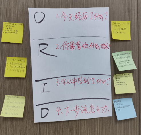 培训的第二大模块采用了ORID(Objective-Reflective-Interpretive-Decisional)结构化反思工具,引导参训者对项目讨论过程和成果进行深入反思。这一环节不仅帮助每位成员从客观事实(Objective)、个人感受(Reflective)、意义解读(Interpretive)到决策行动(Decisional)四个层面进行全面回顾,还促进了个人成长与团队智慧的升华,确保培训成果能够转化为实际行动指南。