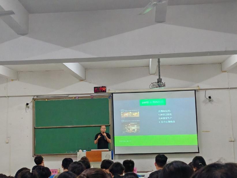 接着,由企影广告陈增海总经理从课程体系思维导图出发,结合公司实际业务以及市场需求开展影视制作方向讲座。陈总还特别提到了公司用人的需求以及关注点,这对于学生的职业规划以及将来求职具有非常重要的参考价值。