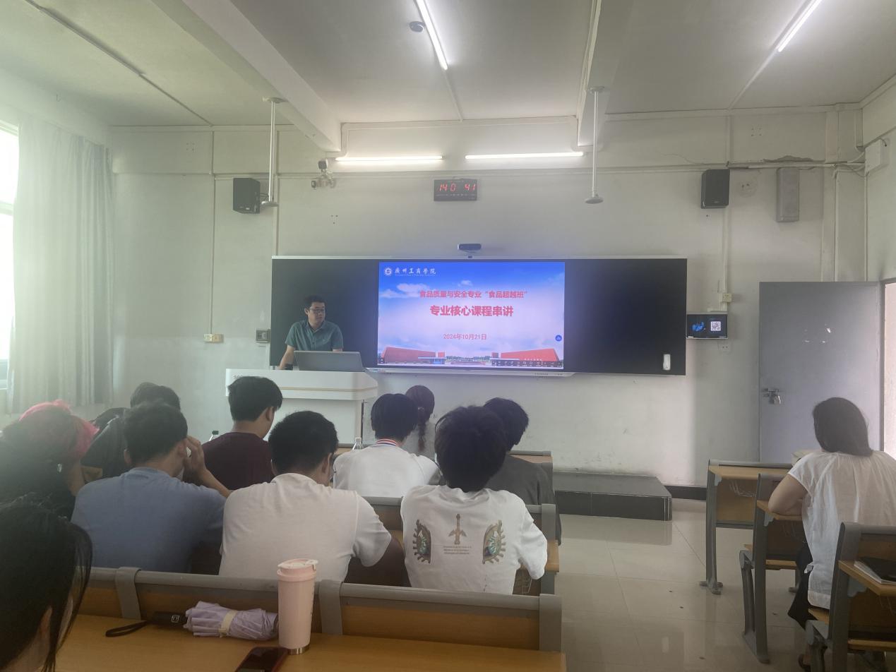 【本网讯】为了更好的让学生了解食品专业的课程体系,解答学生对专业课程的疑问,让学生提前进入角色,明确学业方向,对未来开设的课程有一个宏观的认识。食品质量与安全专业于2024年10月21日召开了实验班专业核心课程串讲会,会议由钱镭副主任主持,邀请了学院督导李瑞婷副教授、食品营养教研室副主任马娟娟老师,分别对《食品安全学》、《食品化学》和《食品科学导论》三门下学期即将开设的专业课进行了介绍。