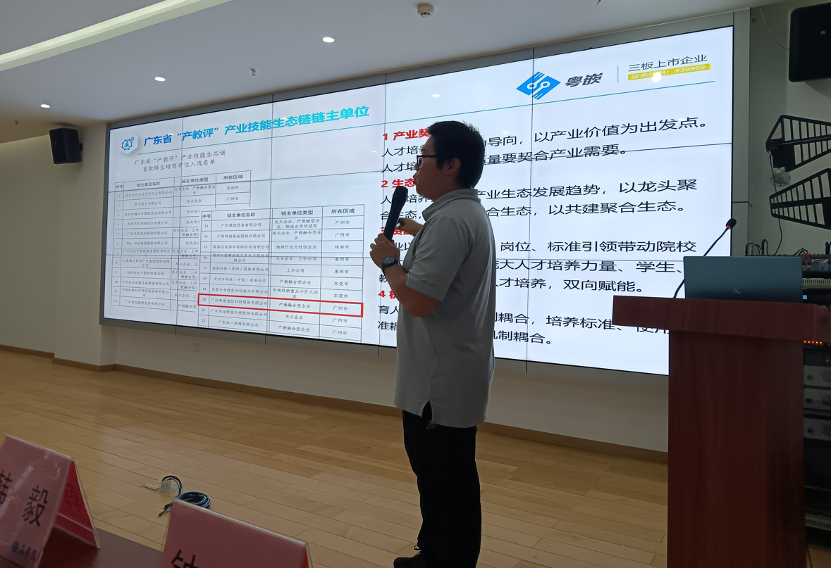 广州粤嵌通信科技股份有限公司校企合作负责人冯毅鹏总经理从“产教评”产业技能生态链、校企合作、产教融合等方面介绍公司与高校合作的情况和学生实习就业情况。