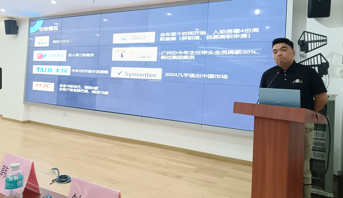 随后,云仓库(广东)信息科技有限公司执行董事钟文总经理从网络安全人才就业成长、人才岗位发展、公司简介、公司招聘等多方面开展人才就业宣讲。