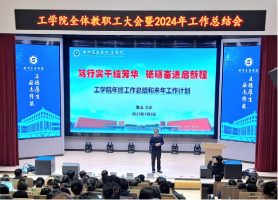 会议最后,张永平院长以“笃行实干绽芳华,砥砺奋进新征程”为主题开展了工学院年终工作总结和来年工作计划。他全面回顾了工学院在学科建设、教学工作、队伍建设、人才培养等方面取得的显著成绩,并指出了存在的不足和短板。同时,也提出了2025年的工作思路和工作要点,包括加强党建引领、落实立德树人根本任务、强化安全意识、孵化和培育更多的校级样板党支部、狠抓学风建设等。