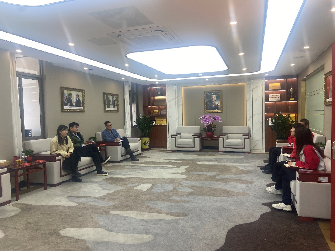随后,调研团队与红牛的多位高层管理者及技术骨干进行了深度交流对话。校企双方围绕“新趋势、新需求、新人才”展开了热烈讨论。首先,红牛公司总经理杨峻分享了饮料制造行业最新发展趋势、企业人才战略以及对未来人才的素质要求;质检部经理邹欣就专业人才需求、岗位技能要求等多个维度分享了宝贵的意见,强调了专业基础知识与实践能力的双重重要性,建议在人才培养课程体系的设置上增加专业技能培训;人事主管黄小林介绍了目前食品制造行业对人才的需求,围绕学历、专业及素质要求展开,指出学校对人才的培养不应只专注专业知识,还需要注重学生职业道德和素养的培养,加强学生的企业认同感。他们指出,随着消费者对健康、营养、可持续性等方面要求的提升,食品行业正迫切需要具备跨学科知识、创新思维及实战能力的复合型人才。