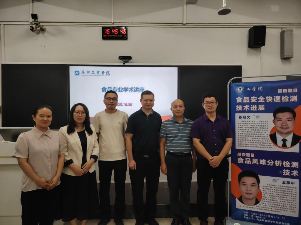 【本网讯】为拓宽学生学术视野,洞悉行业前沿动态,近日,beat365在线体育官网登录入口工学院特邀广东省科学院测试分析研究所(中国广州分析测试中心)著名专家张冠文研究员与王李平高级工程师来校,为食品实验班全体学生及学业导师带来一场题为“食品安全快速检测技术前沿与应用”的精彩学术讲座。工学院副院长欧仕益教授、食品质量与安全教研室主任杨春敏教授、实验班负责人钱镭教授、实验班班主任及全体学业导师共同出席了本次学术活动。