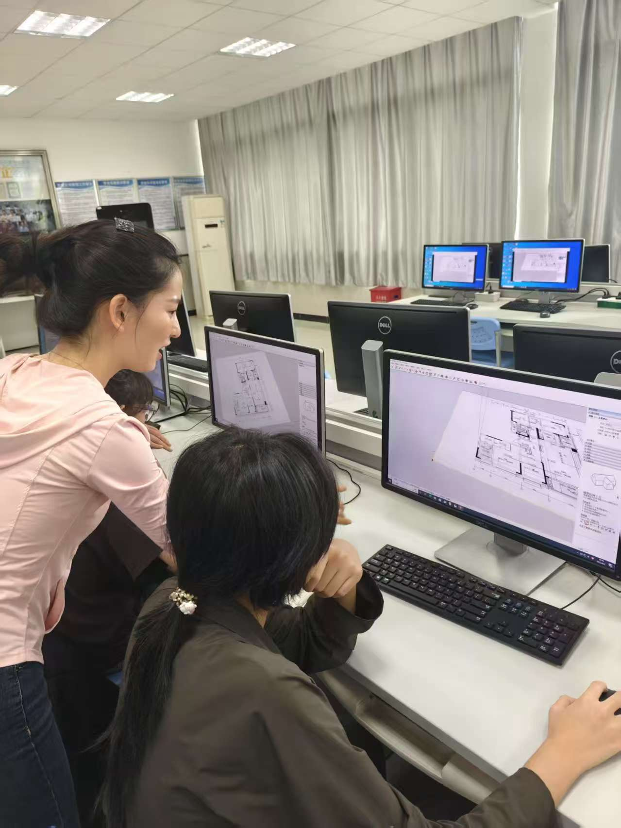 刘鸣茗老师正在课上指导学生提出的专业问题