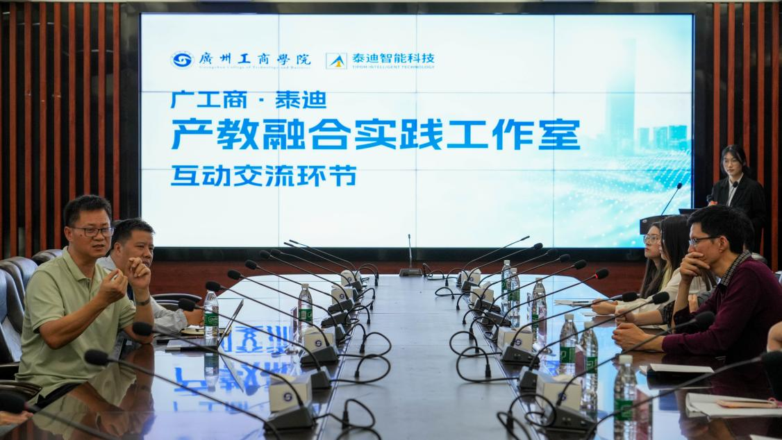 会议最后,校企双方对工作室的未来发展进行了展望。“广工商·泰迪产教融合实践工作室”的成立,是学院深化校企合作、推进产教融合人才培养的重要举措。未来,校企双方将共同推进项目实践、技能训练和职业能力提升等工作,打造高水平实践育人平台,助力学生在实践中成长成才。学院将持续完善协同育人机制,强化校企合作深度与实效,培养更多具备创新精神与实践能力的高素质应用型人才。”