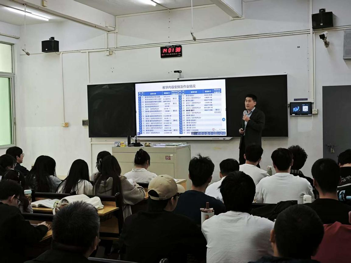郝建国老师讲授《计算机程序设计》课程,教学内容为“指针的定义、引用”,郝老师以“内存地址”为核心切入点,通过“酒店房间-房号-客人”的生动类比,将抽象的指针概念具象化,引导学生逐步理解指针的本质与操作。在授课过程注重可视化教学,结合动态图示与代码逐步跟踪,清晰展示指针在函数参数传递中的实际作用,有效降低学生学习门槛。课堂内容与课件案例紧密结合,逻辑严谨,体现扎实的教学设计与课堂把控能力。