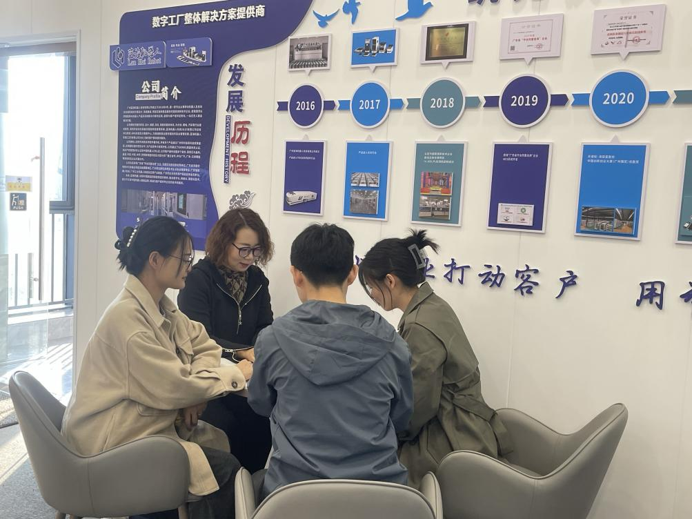 广州蓝海机器人系统有限公司是深耕工业机器人领域的高新技术企业,在工业机器人控制系统研发、自动化生产线集成等方面具备核心技术优势,产品广泛应用于智能制造、电子信息等多个产业领域,近年来对计算机、通信、自动化等专业的高素质技术人才需求持续增长。座谈会上,蔡总首先对段晓霞老师一行的到访表示欢迎,详细介绍了公司的发展战略、业务布局及人才招聘计划。她谈到,企业的发展离不开优质人才支撑,公司当前重点招聘工业机器人编程调试、嵌入式系统开发、技术支持等岗位的毕业生,既看重扎实的专业理论基础,更注重实践操作能力和创新思维,希望能与高校建立长期稳定的人才合作机制。