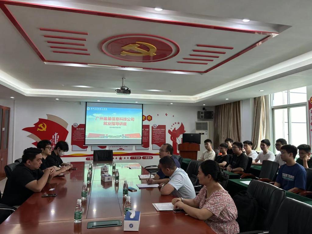 【本网讯】5月22日,广州盈基信息科技公司代表结合丰富的人生阅历与行业洞察力,为工学院即将步入社会的大三学生们带来了一场别开生面的计算机行业就业指导讲座。本次活动旨在帮助学生们清晰认识计算机行业当前的就业形势,提升职业规划能力,为未来的职业生涯铺就坚实道路。