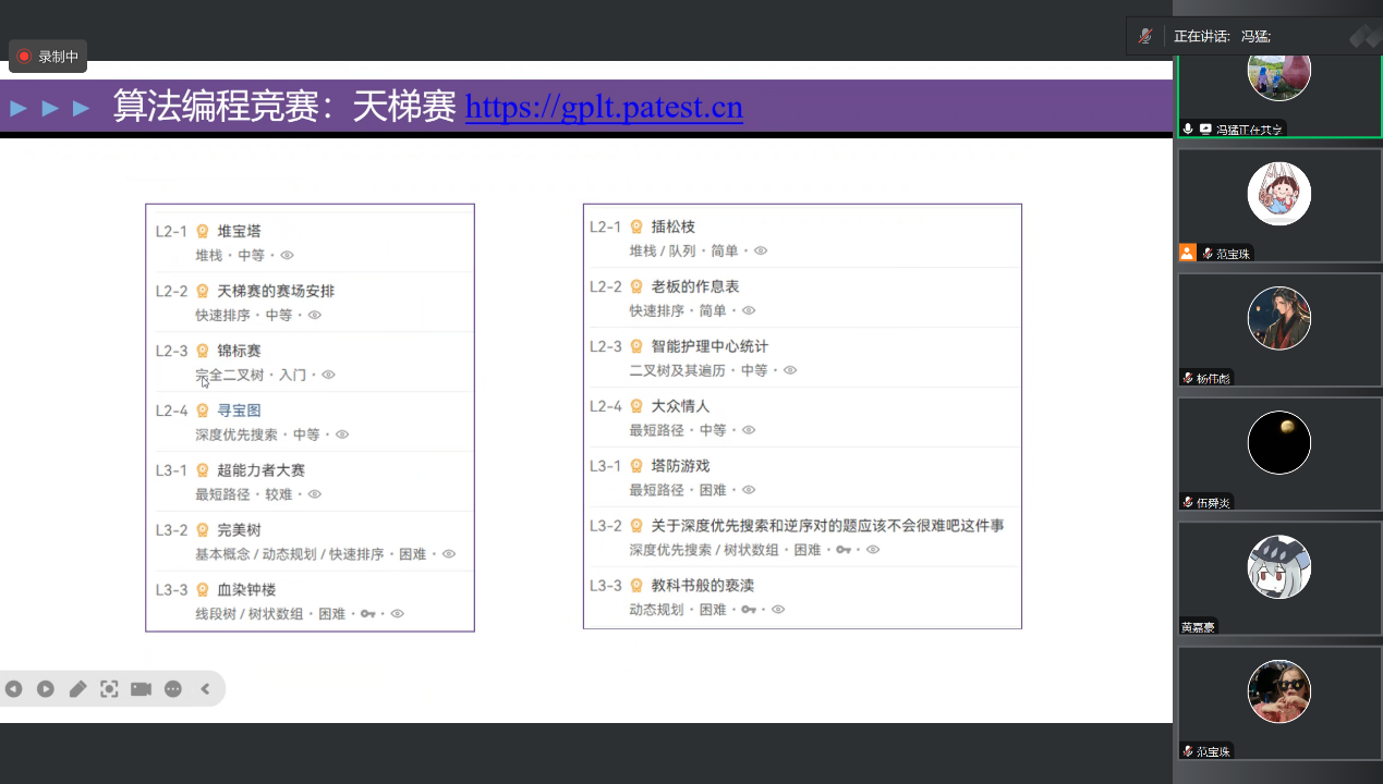 在第12周的串讲中,冯猛老师通过线上会议为学生带来了的数据结构与算法课程,以典型算法的讲解和分析为核心,帮助学生深刻理解数据结构设计思想。范宝珠老师主讲的数据库原理与应用课程,重点讲解关系型数据库的核心原理、应用领域及学习方法,帮助学生了解数据库基础。朱文彬老师的高级网页设计课程则深入探讨网页设计的前沿技术,涵盖交互设计与美学融合的实际应用,为学生拓展实践视野。汤杏华老师主讲的软件工程导论课程,从软件开发生命周期的理论与实践出发,帮助学生系统化理解软件工程基础框架。徐永哲老师的JavaScript应用技术课程梳理了JavaScript核心技能,包括事件处理、DOM操作和前端框架应用,注重实用性与创新性的结合。