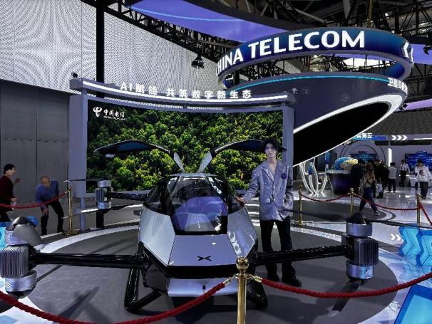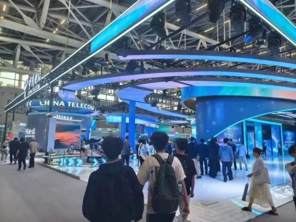 在这丰富多彩的AI盛宴里,全球的创新力量汇聚在这大会之中,大会占地38,000平方米,其中四大展馆内的七大特色展区错落有致。中国电信及其生态合作伙伴携最新科技成果亮相,涵盖人工智能、量子安全、低空经济等多个热点领域。同学们穿梭其间,不仅能近距离领略前沿科技的魅力,更有机会参与互动体验,感受数字科技带来的便捷与乐趣。