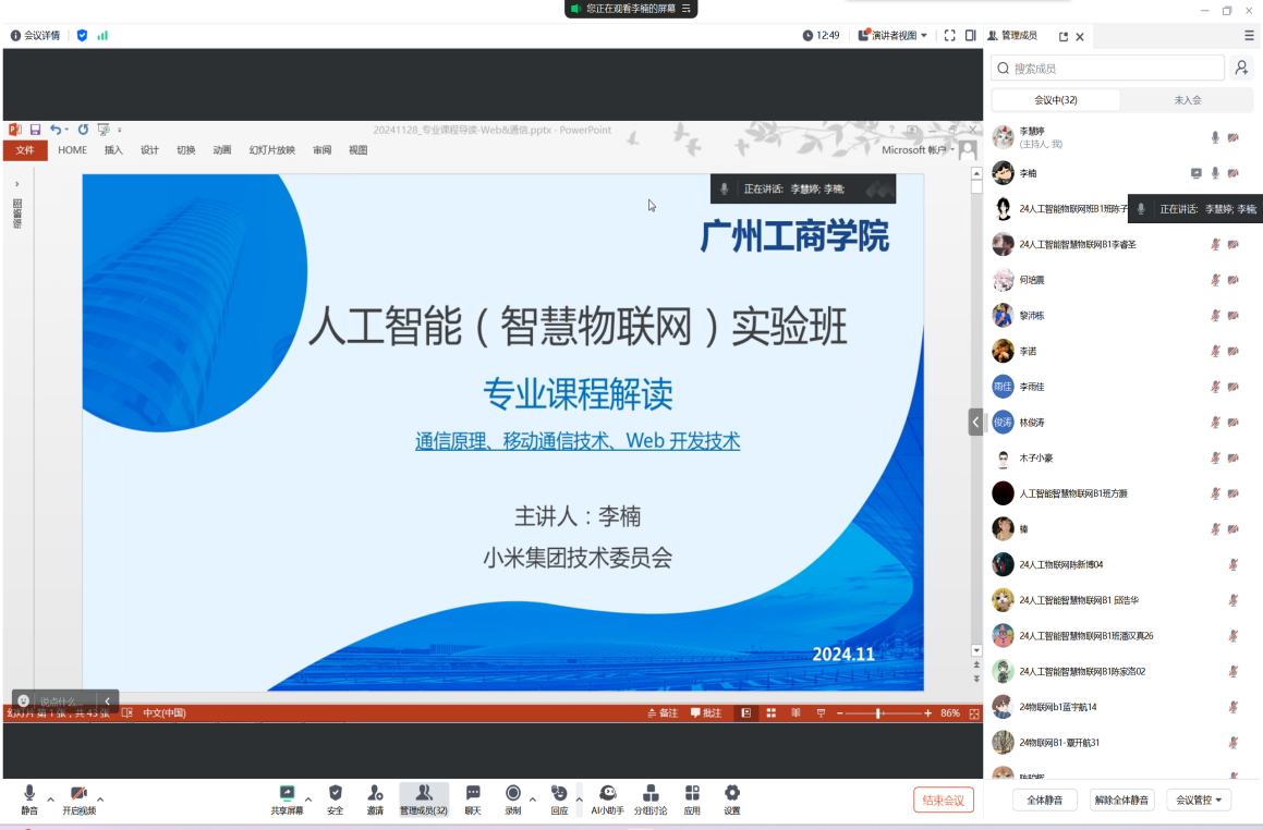 【本网讯】2024年11月28日,在beat365举办了一场别开生面的企业导师核心专业课程认知讲座。本次讲座特别邀请企业导师小米集团技术委员会专家组成员、首席技术顾问、小米AIoT首批认证专家李楠主讲,李楠老师就通信原理、移动通信技术与Web开发技术这三门核心专业课程进行了深度剖析与解读。本次活动旨在帮助学生更好地理解专业课程内容,把握学习方向,并为未来的职业发展奠定坚实基础。