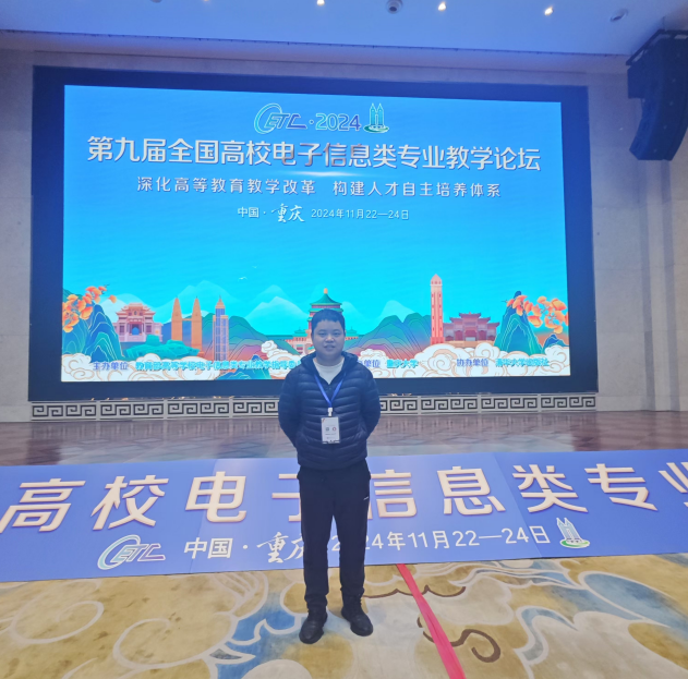 【本网讯】为进一步探索和推进电子信息类专业的教学改革,促进教育现代化和人才培养体系的构建,工学院通信工程教研室的刘裕权老师于2024年11月22日-24日参加了在重庆举行的第九届全国高校电子信息类专业教学论坛。