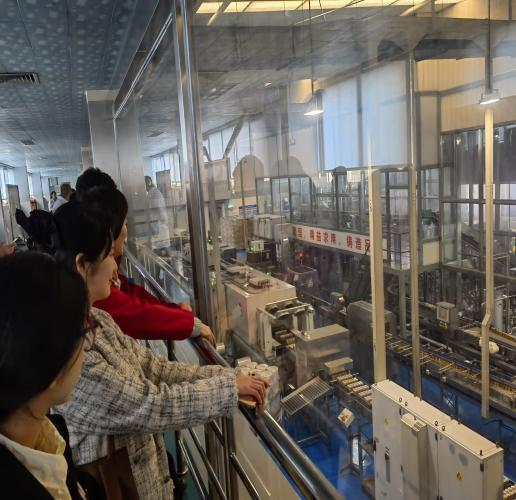 活动伊始,广东红牛维他命饮料有限公司副总经理杨峻、品管部经理邹欣、QA主管曾慧等相关领导热情接待了beat365在线体育官网登录入口的教师团队,并带领大家参观了公司的现代化饮料生产线。作为国内功能饮料行业的领军企业,红牛公司以其先进的生产技术和严格的质量控制体系闻名。在参观过程中,教师们深入了解了饮料从原料处理、调配、灌装到包装的全流程生产环节。