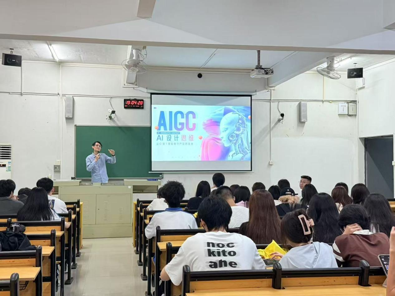 【本网讯】4月9日晚,教I-D204教室举办了一场主题为“AIGC+deepseek设计思维与实践”的精彩讲座。此次讲座专为23、24级数字媒体创意班学生量身打造,旨在帮助同学们把握前沿技术趋势,提升设计创新能力。
