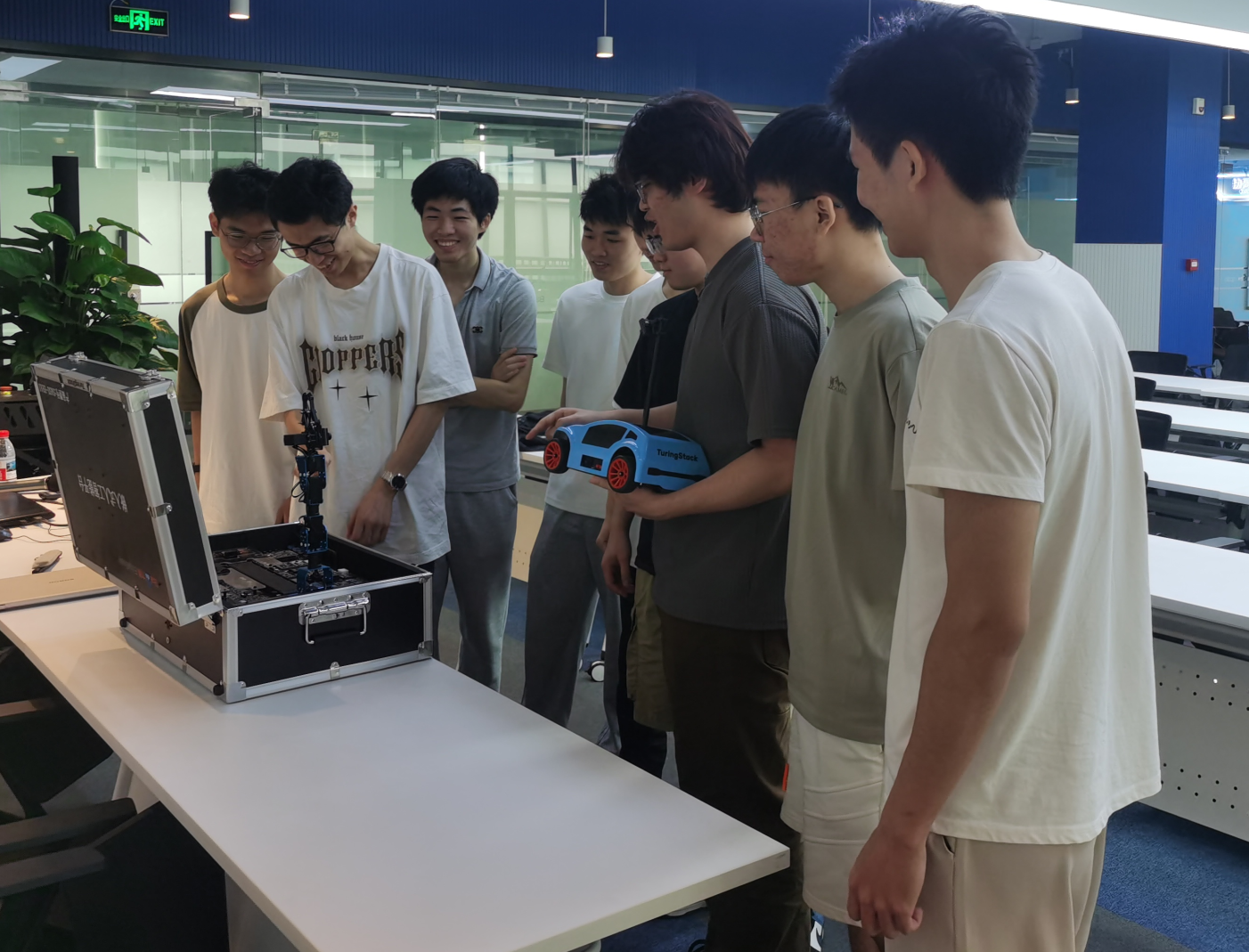 学生团队在企业技术专家陪同下,参观百度Apollo Park智能云广州公司及其战略合作生态伙伴图灵智新公司。随后,企业技术总监马忠臣介绍公司在智能机器人领域的技术布局,展示企业最新研发智能汽车和智能机器人,同时,马总监向到访师生详细介绍智能机器人的应用场景和核心技术,该机器人能够自主导航、避障,并具备物体识别和抓取功能,特别适用于尤其适用于餐厅内的人员送餐服务,有效提升服务效率和顾客体验。同时,企业展示和讲解了人工智能实验箱和智能汽车产品等专用实验实训设备,人工智能实验箱可用于AI+的全场景教学,包括,智能家居、智能安防、智能交互、智慧医疗、智慧仓储、智慧工厂等场景的教学,智能汽车配备先进的视觉和自动驾驶系统,能够支持计算机视觉和自动行驶等方面教学。