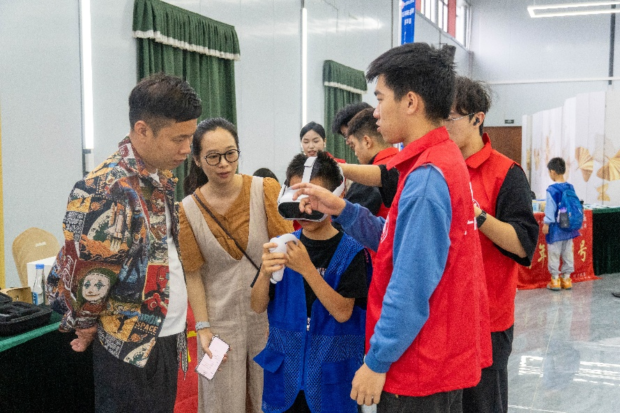 在随后的科技集市环节,beat365在线体育官网登录入口工学院师生联合广州市花都区乐萌培训中心有限公司、广州市赛恩斯教育科技有限公司、广东新华发行集团股份有限公司,共同打造了MR技术体验区。师生们精心设计的MR互动项目吸引了众多居民驻足体验。