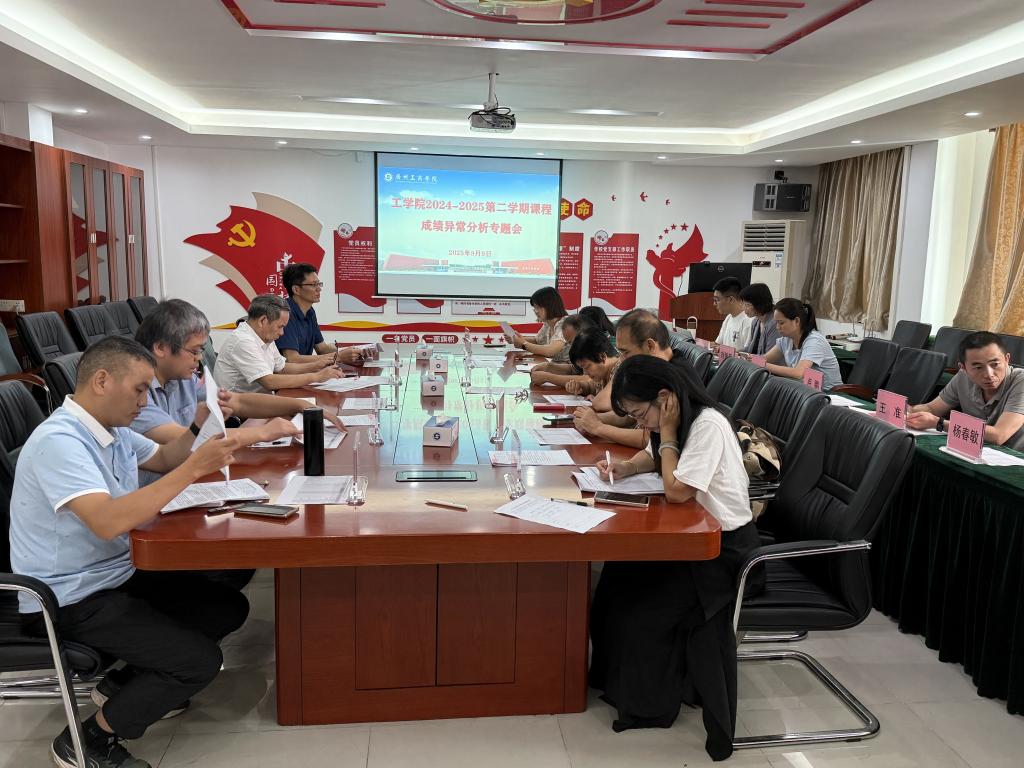 【本网讯】2025年9月9日下午14::30,工学院召开2024-2025学年第二学期课程成绩异常分析研究专题会,工学院教学指导分委员会全体成员及教研室主任参加会议,会议由张永平院长主持。