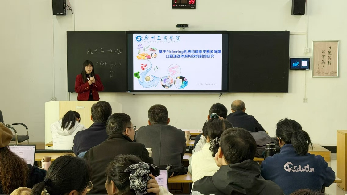 【本网讯】为促进学术交流,激发创新思维,促进跨学科研究思路碰撞,助力科研项目优化升级,食品专业博士沙龙第二期活动于2025年11月20日下午在教Ⅱ-C105举行。本次活动延续了沙龙“聚焦前沿、促进交叉、激发创新”的宗旨,旨在为教师搭建高水平的学术交流平台,提升科研素养与项目申报能力。本次活动由郑茵博士主持,卢明磊博士和马娟娟博士进行专题汇报,工学院副院长欧仕益教授及食品专业多位青年教师参与。