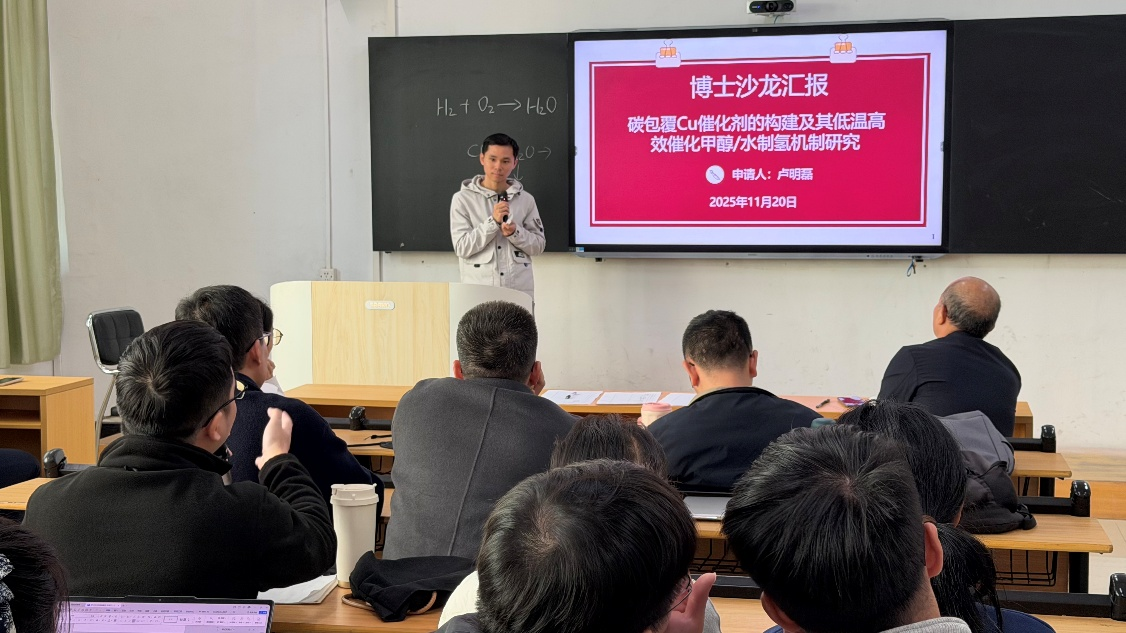 活动伊始,卢明磊博士以《碳包覆Cu催化剂的构建及其低温高效催化甲醇/水制氢机制研究》为主题,详细介绍了非贵金属Cu基催化剂在应用中活性与稳定性难以兼顾的核心瓶颈,同时提出了通过一系列创新的碳包覆与金属改性策略,成功构筑了多位点协同、兼具高活性与水热稳定性的复合催化体系。卢博士重点阐释了其在精准调控催化剂分散度、界面结构与反应路径等方面的系列突破,这些成果不仅实现了制氢性能的显著跃升,更包含了对构-效关系的深刻揭示。