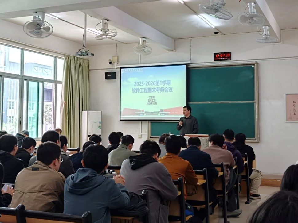 本网讯为进一步规范期末考核管理流程,强化教学档案材料归档意识,切实提升教学质量保障水平,软件工程教研室于12月25日中午12:50—13:40在教II-B201教室召开软件工程专业期末考核专项培训会。会议由软件工程教研室主任卢鹏主持,软件工程专业全体教师参加了本次会议。