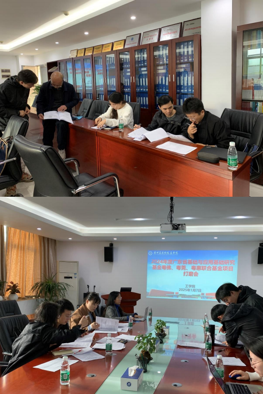 【本网讯】为了做好2024年度广东省基础与应用基础研究基金粤佛、粤莞、粤惠联合基金项目申报的充分准备,提高项目材料质量和立项通过率。工学院高度重视、精心准备,于2025年1月7日12:30、14:30分别在院部楼512、612举办项目打磨会,专家分别为工学院张永平院长、欧仕益副院长,暨南大学黄俊卿教授、华南农业大学吕慕雯教授。