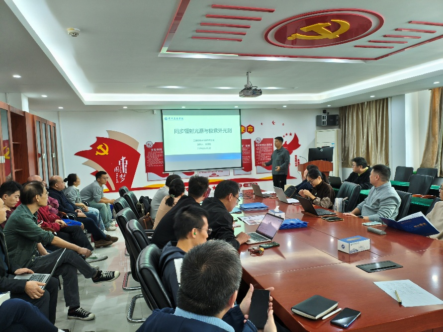 沙龙伊始,李焜阳老师以“同步辐射光源与极紫外光刻”为题,带来了一场内容详实、视野宏大的报告。他从摩尔定律的发展与半导体产业格局切入,系统梳理了极紫外(EUV)光刻技术的核心环节,包括ASML EUV光刻系统、光源技术、国际同步辐射光源线站应用,以及EUV掩模的生产、检测与关键挑战(如缺陷检测方法)。报告不仅涵盖了国外典型研发案例(如ALS),还介绍了X射线相干成像、集成电路新型无损检测方法PyXL等前沿方向。在自身课题部分,李焜阳老师重点分享了其在EUV波长掩模检测技术、检测辅助系统开发、光束线设计与仿真、成像与光学系统设计、真空机械设计等方面的研究进展,并对后续工作计划进行了清晰展望,为在座师生勾勒出从基础原理到工程应用的完整技术链条。