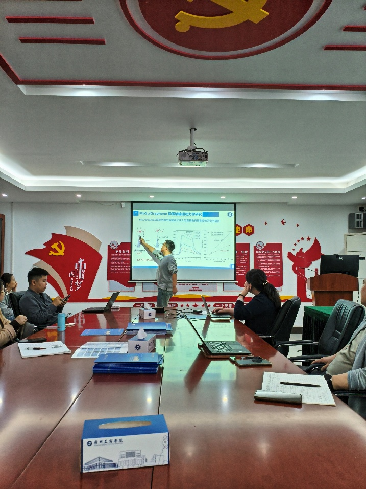 第三位报告人尤勇勇老师的主题为“MoS2/Graphene异质结构超快弛豫及层间输运动力学”。他首先阐述了研究二维材料异质结(如MoS2/石墨烯)超快动力学过程对于开发高速、低功耗、高散热性能新一代电子器件的重大意义。接着,他重点介绍了在异质结输运动力学研究中观察到的反常物理现象,以及为此与中科院等单位合作开展理论建模以揭示深层机理的探索过程。报告最后对二维材料异质结在光电领域的应用前景进行了总结与展望。
